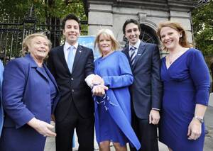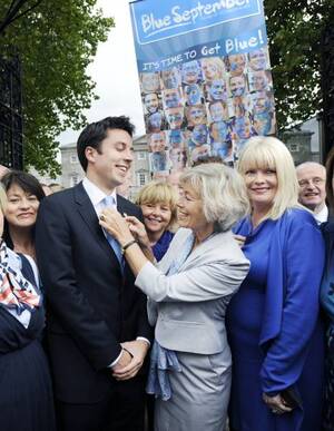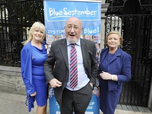 To mark Blue September (to raise cancer awareness among men) members of both houses of the oireachtas led by Mary Mitchell O’Connor (top pic, left) and Frances Fitzgerald (top pic, right) with Caoimhghin O Caolain, wore blue. Joining them middle pic, were from left: Eoghan Murphy, Simon Harris and Catherine Noone. Olivia Mitchell attends to Murphy in the bottom pic.
