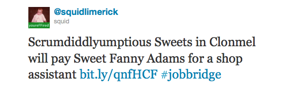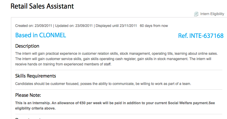 Gob Stopper Admin at 3:23 pm September 23, 2011 Retail Sales Assisatnt (JobBridge) FacebookTwitterPinterestSponsored Link