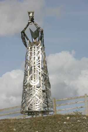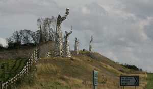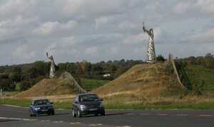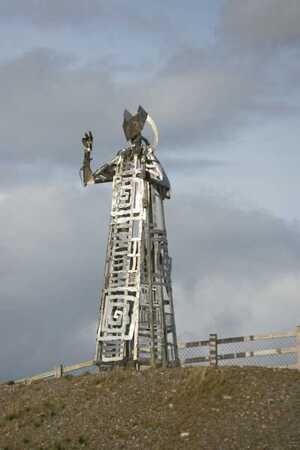 The 25 foot high steel figures were created by artist Maurice Harron and entitled Saints And Scholars.