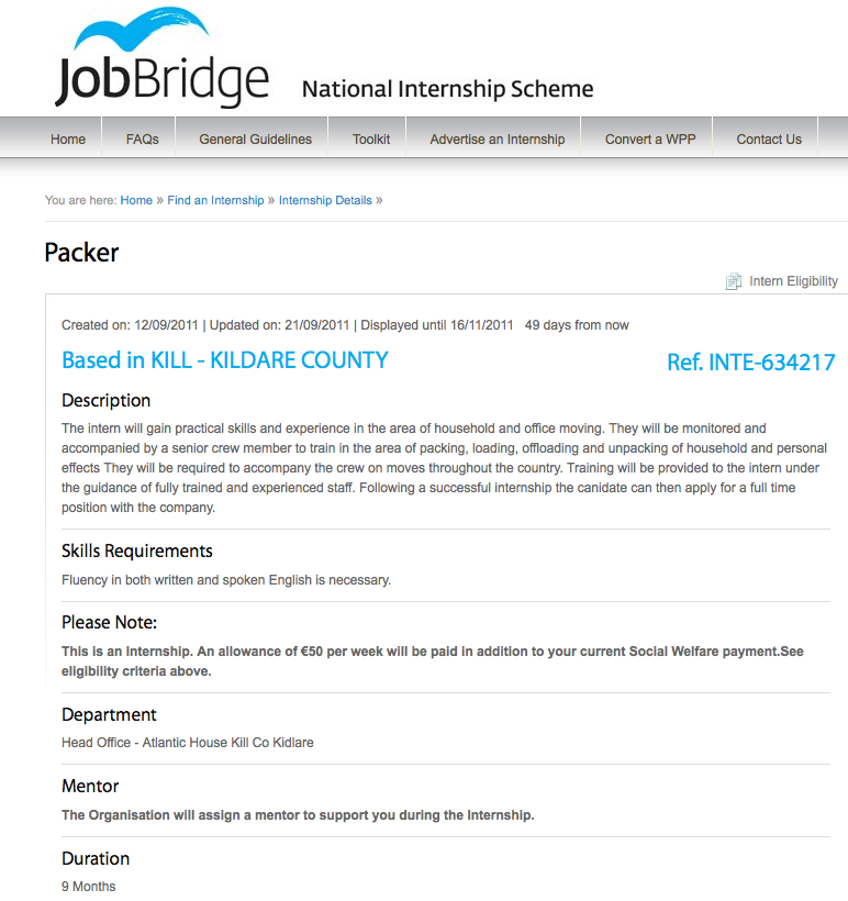 Getting Old Now Admin at 2:28 pm September 27, 2011 This might have raised an eyebrow last month. Packer (JobBridge) FacebookTwitterPinterestSponsored Link