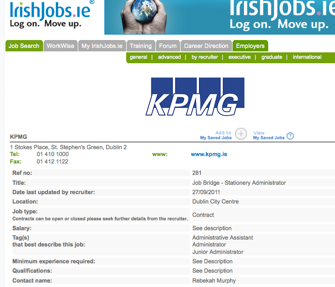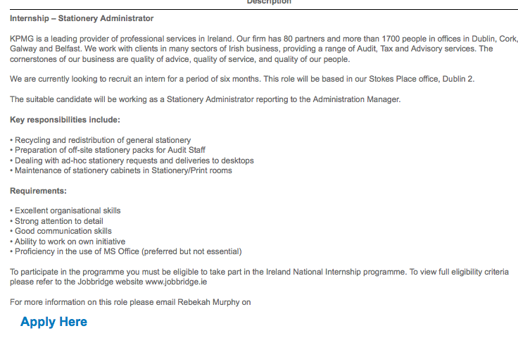 A stationary intern for KPMG (2010 profits from UK alone £400 million)?