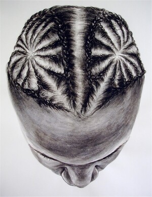 I loved the many beautiful hair styles of both my male and female students… I would sometimes run after students in the hallway and request that they stop by room 108 briefly to allow me to take a picture of their hair and braid patterns.I was always pleasantly surprised and pleased that everyone always stopped by and allowed me to document their hair style. All my students if they had an interesting or unusual hair and braid pattern always allowed me to take pictures as well. I knew I wanted to use these photographs as reference material for a future art project but wasn’t sure what I would do with them.