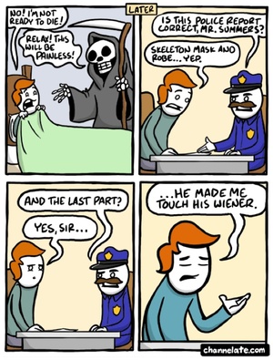 The Wiener Reaper Niall Murphy at 1:19 pm September 30, 2011 Channelate FacebookTwitterPinterestSponsored Link Related posts: The Equally Grim Reaper Tragic Realism How Musicians Die ‘Revellers May Not Have Realised He Was Dead’