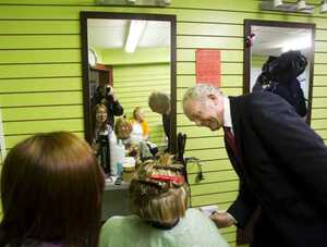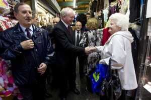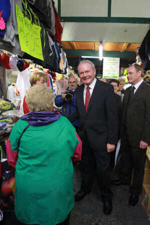 Martin McGuinness canvassing in Meath Street, Dublin yesterday afternoon.