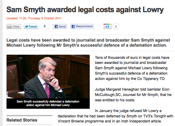 Ouch. Admin at 11:55 am October 6, 2011 Sam Smyth Awarded Legal Costs Against Lowry (RTE) FacebookTwitterPinterestSponsored Link