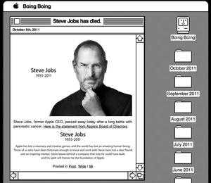 Screengrab: BoingBoing reports the news with a vintage Apple interface tribute