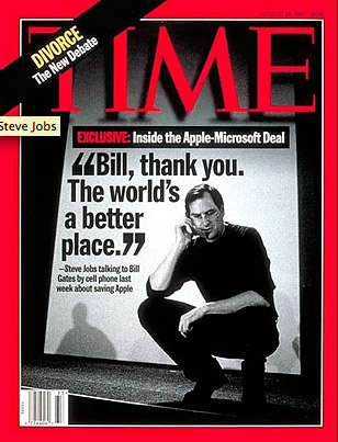 “The rebel flag is flying over Apple Computer, Inc., again, thanks to Jobs. The Silicon Valley visionary who co-founded Apple in his father’s garage in 1976, who launched the wildly successful Macintosh only to be booted by the corporate pinheads in 1985, is back running his first love.” (1997: Inside the Apple-Microsoft Deal)