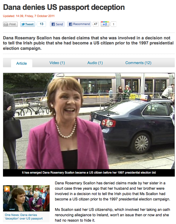 Dana Says US Citizenship An ‘Advantage’ In Áras Race (Irish Times)