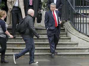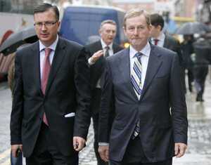 Enda Kenny pictured outside the Department of Finance with his advisor Mark Kennelly.