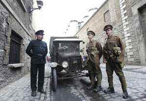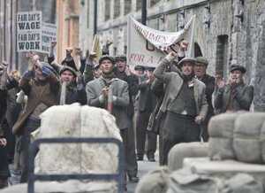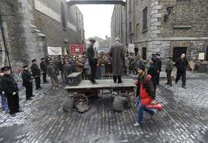 Taken yesterday on the the set of TV Mini series Titanic: Blood and Steel being filmed at St James Gate in Dublin. Liam Cunningham (second pic) plays a pre-‘Jazz hands’ Jim Larkin.