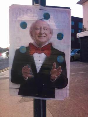 The Great Higgini Admin at 11:00 am October 14, 2011 By far the most charming defaced poster of the campaign, apparently adorning a lampost in Kilmainham right now. (Thanks onetwothreefour) FacebookTwitterPinterestSponsored Link Related posts: Ah Here Eh… Memes As Movies Viva Le Squee