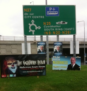 Evil Clown Pulls Ahead In Aras Race Admin at 5:15 pm October 15, 2011 On the Kinsale roundabout in Cork. (Thanks Barry Murphy) FacebookTwitterPinterestSponsored Link Related posts: Hard Core Horror What Am I? Meanwhile, At The Fun Place And Then I Saw Jesus