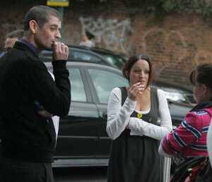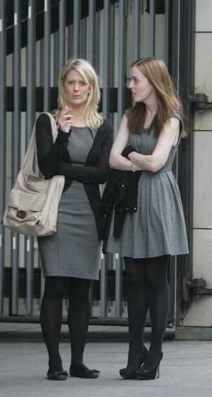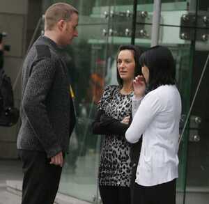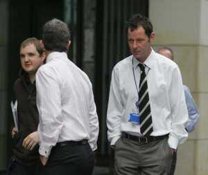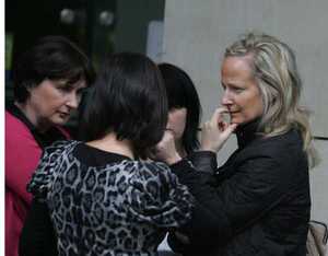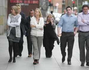 Workers outside Aviva’s Dublin HQ this morning.