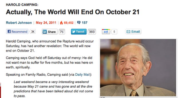 A Gentle Reminder Admin at 10:44 am October 21, 2011 Actually, The World Will End On October 21 (Business Insider) Thanks Spaghetti Hoop FacebookTwitterPinterestSponsored Link