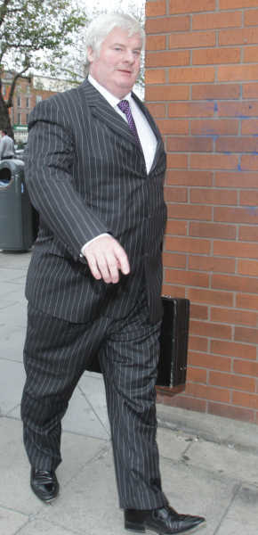 Priory Hall developers Tom McFeely (top) and Larry O’Mahony arrive at the High Court literally within the last few minutes.