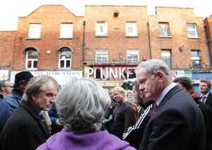 Martin McGuinness and James Connolly’s great grandson James Connolly-Heron on a tour of 1916 sites in Dublin this afternoon.