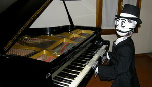 This is Jazz Robot from Italian electronics company Teotronica. It plays Mozart and mimes Mercury at the piano with two hands and 19 fingers.
