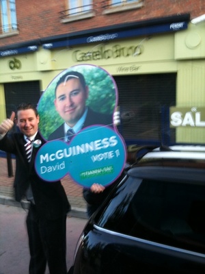 David McGuinness, FF candidate in Thursday’s Dublin-West by-election and his nutty poster ‘papped’ in Castleknock literally within the last hour.