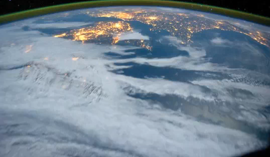 This video was taken by the crew of Expedition 29 on board the International Space Station. At the beginning of the video, the Aurora Borealis can be seen in the far left along with clouds over the North Atlantic Ocean. Tracking southeast, the first view of lights is from the United Kingdom (Ireland, uptrack from the UK, is under cloud), with cities like Liverpool and London showing up nicely. Across the English Channel, the cities of Brussels and Rotterdam (left) and Paris (brightly-lit city west of Brussels) all stand out through a network of smaller cities in Western Europe.