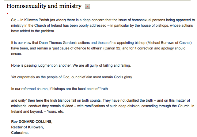 Homosexual Persons Admin at 10:20 am November 7, 2011 Irish Times Letters Minister Rev Tom Gordon civil partnership ‘welcomed’ (BBC, September 5) FacebookTwitterPinterestSponsored Link