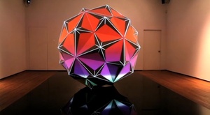 Artist Dev Harland’s light sculpture ‘Parmenides I’: a 2.5m diameter white geometric shape that forms a canvas for the video projection.