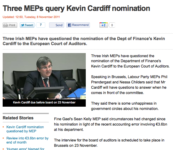Kevin’s Gate Admin at 2:18 pm November 8, 2011 Three MEPs Query Kevin Cardiff Nomination (RTE) Previously: “I Am Puzzled Myself.” FacebookTwitterPinterestSponsored Link