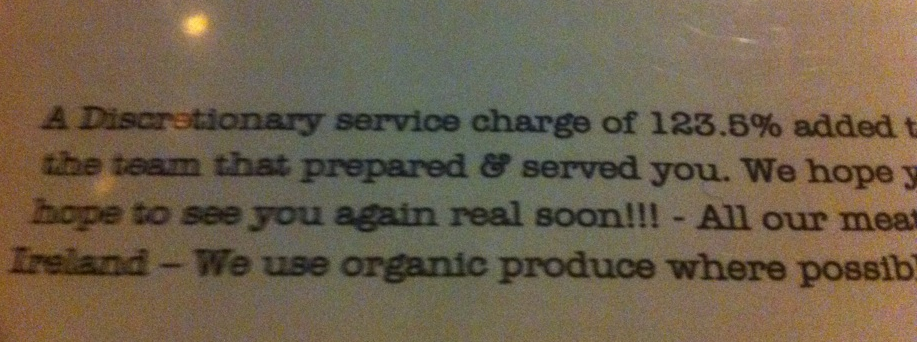 Discretionary Admin at 1:45 pm November 14, 2011 “Spotted in Bedlam restaurant in Dublin. Seems a little steep.” (Briann O’Connor) FacebookTwitterPinterestSponsored Link