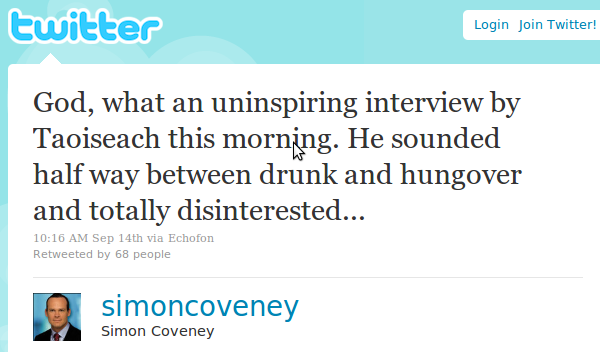 ‘Frontline’ Tweet ‘Earth-Shattering’ (Éanna Ó Caolai, Irish Times)