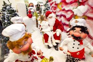 Mabel Healy, age four and an unemployed dude in a red suit Santa Claus at the opening of the Christmas Grotto at Jervis Street Shopping Centre In Dublin within the last hour.