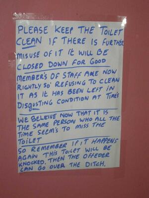 Meanwhile, In Kerry Admin at 12:04 pm November 16, 2011 “This is a genuine sign in the toilet from the Healy-Rae garage/Mace store in Co. Kerry.” (Zosimush) FacebookTwitterPinterestSponsored Link