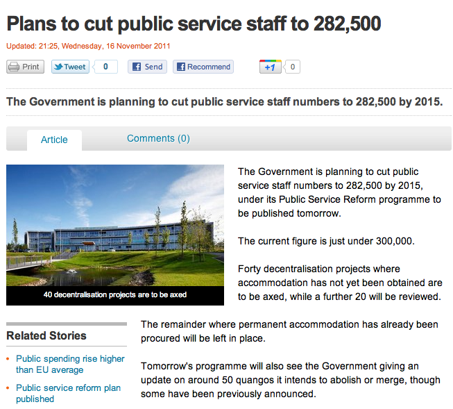 Reform, You Say? Admin at 9:31 pm November 16, 2011 Plans To Cut Public Service Staff To 282,500 (RTE) FacebookTwitterPinterestSponsored Link