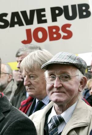 Publicans – all members Vintners’ Federation of Ireland (VFI) – on Kildare Street within the last hour. The VFI estimate 30,000 jobs have been lost in the pub trade in the last five years.