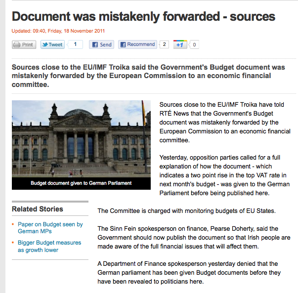 European Commission Says Budget Leak ‘Regrettable’ (Irish Times)