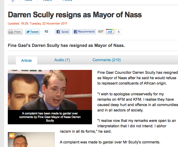 Darren Scully Resigns As Mayor of Nass (RTE)