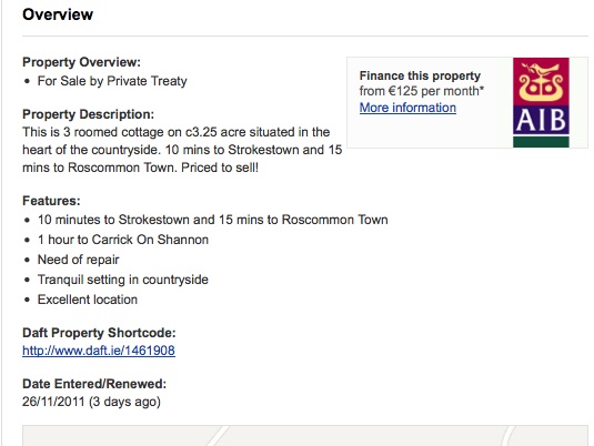 Meanwhile, Near Strokestown Admin at 10:04 am November 29, 2011 What’s more worrying is that this might actually be a serious ad. Carroward, Kilrooskey, Co. Roscommon (Daft.ie) Thanks Enda Crowley FacebookTwitterPinterestSponsored Link