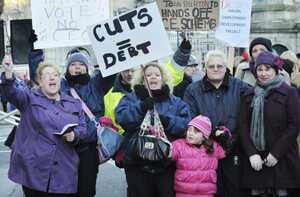 The Lone Parents Campaign at todays SIPTU protest rally literally earlier. The protest rally was supported by INOU, OPEN, Citywife Drugs Crisis Campaign, North Inner City CE Network and the ICTU Community Committee.