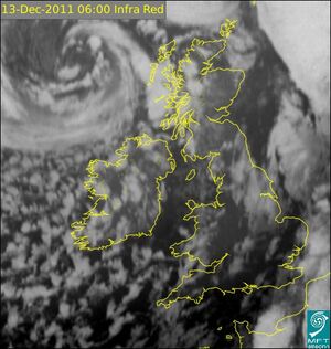 That’s that apocalyptic swirl at the top left hand corner photographed from space at 6am.