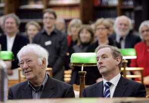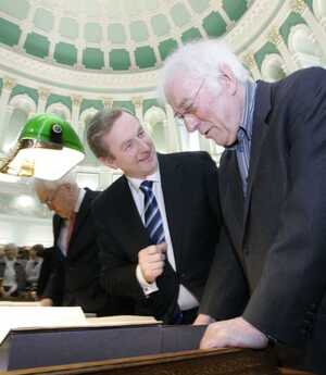 Seamus Heaney handed his literary papers to the National Library of Ireland literally earlier at a ceremony attended attended by Taoiseach Enda Kenny (below) and Minister for Arts Jimmy Deenihan (bottom pic).