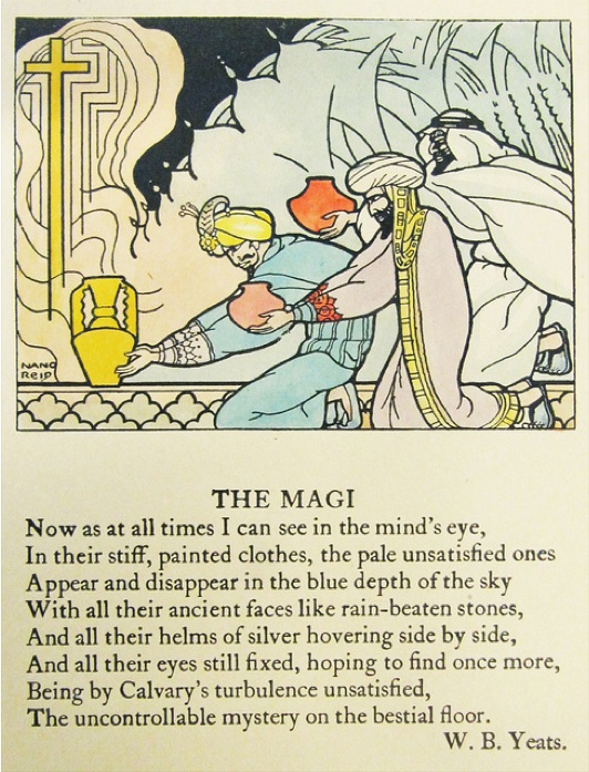 A mid-20th century Christmas Card from The Cuala Press of The Magi by WB Yeats illustrated by Nano Reid.