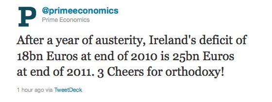 Succinct Admin at 10:40 am January 9, 2012 @primeeconomics Prime Economics.org FacebookTwitterPinterestSponsored Link Related posts: MORE? Government’s Growth Predictions: Insufferable Nonsense, Say Troika What The FAC? Little Drummer Boy