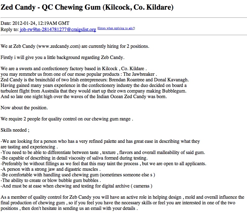 JawBridge Admin at 12:30 pm January 24, 2012 QC ChewingGum, Zed Candy (Craiglist) Zed Candy? Yes, they really do exist. Thanks Erin Khoo FacebookTwitterPinterestSponsored Link