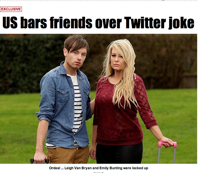 British pair arrested in U.S. on terror charges over Twitter jokes (Mail Online)