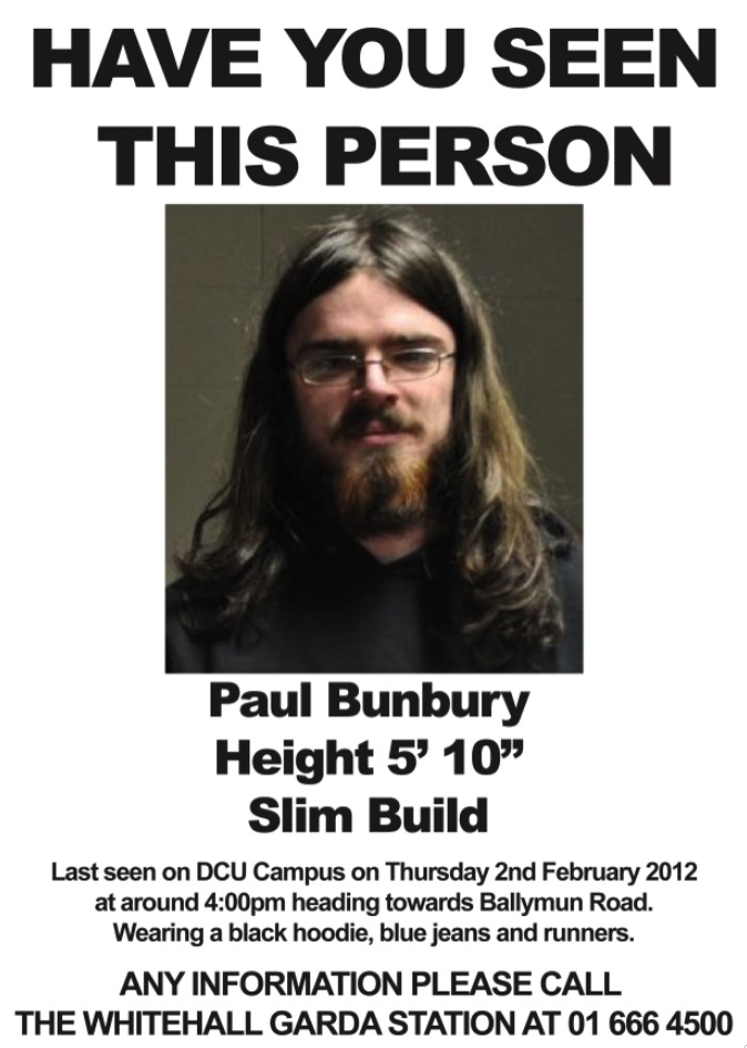 The Last CCTV footage they have of Paul was from Eurospar on the Ballymun Road and that was at about 16:05. His apartment has been searched in campus and nothing. Hopefully today CCTV of Dublin Bus can be searched in the hope he got a bus somewhere. His online accounts are being monitored in case he does log on. Would you mind sharing this on your website and asking as many people to share it online?