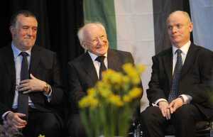 Later with Colaiste Eoin head teacher Finin Mairtin the president even managed to make  the guy on the right (Antoin Delap, Chairmen of Bord na Mona) chortle.