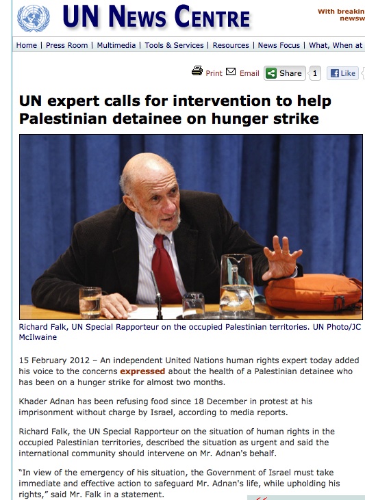 UN Expert Calls For Intervention To Help Palestinian Detainee On Hunger Strike (UN)