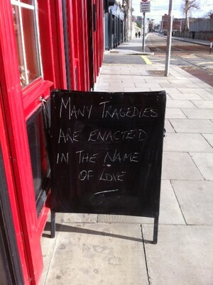 Existential Blackboard Admin at 1:09 pm February 24, 2012 The Millenium Bar, Parkgate Street, Dublin, within the last 30 minutes. Thanks Liamo FacebookTwitterPinterestSponsored Link Related posts: The Discount That Made Me Sadio The Sign That Makes Children Sob Sure Isn’t It… Meanwhile, In The Ring Of Kerry