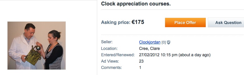 Finally Admin at 2:21 pm February 28, 2012 Clock Appreciation Courses (Adverts.ie) Thanks Mark O’Toole FacebookTwitterPinterestSponsored Link