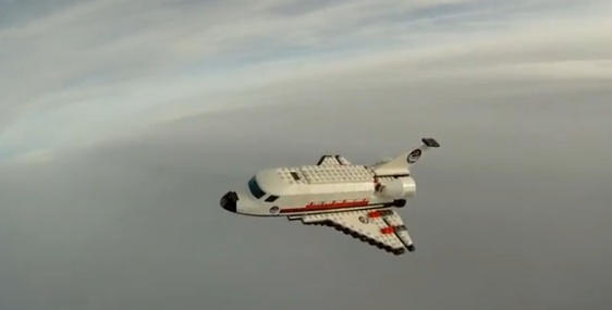 With another weather balloon/LEGO model/camera combo, YouTuber vinciverse created this delightful video of a LEGO Space Shuttle floating above the Earth.