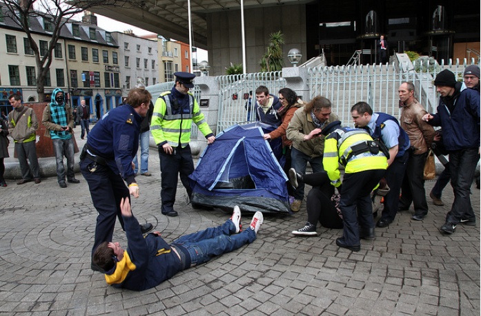 Gardai forcibly prevent #OccupyDameStreet activists from setting up a tent within the last ten minutes