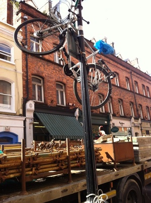 Well if it’s not one thing, it’s another…Spotted on Wicklow St just moments ago.What would your bike locking expert have to say about that?